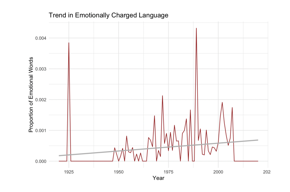 As a final paper in my PWR 1 writing seminar, I decided to incorporate my newly learned R skills to analyze my hypothesis on rises in polarizing language.
